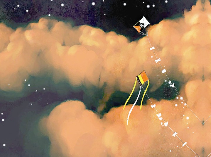 小囡囡就這么仰望著那個(gè)高掛在天上的風(fēng)箏,她也不去追,不去搶。因?yàn)榭粗L(fēng)箏還在天上,心里就還有夢(mèng)。如果把它拿在手上,可能,她就再也不會(huì)做夢(mèng)了?! ?